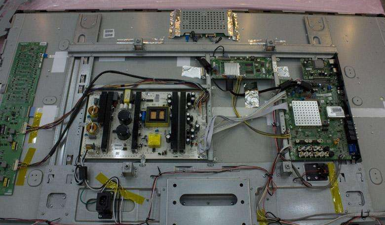第三步,現(xiàn)在的液晶電視,里面的電路板并不多,基本都是由電源板,邏輯板,高壓板組成,可以修理的元件不多,壞了基本是換電路板;如果液晶面板壞了,一般修理店也沒有辦法的。
