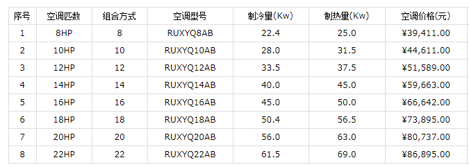 1、VRV X系列單模塊室外機(jī)價(jià)格表