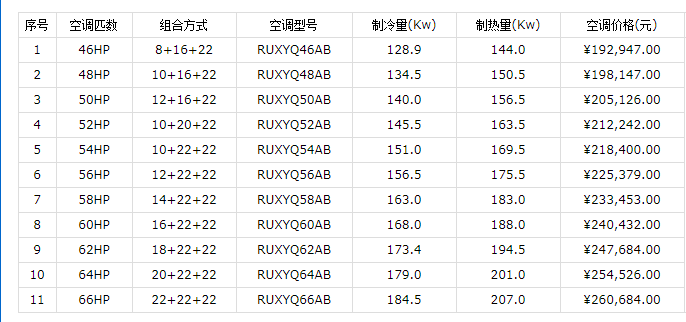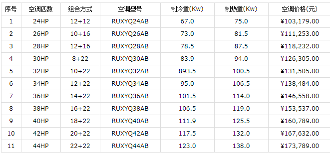 2、VRV X系列雙模塊室外機(jī)價(jià)格表