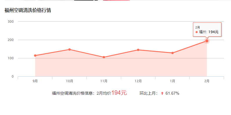 在福州洗次空調(diào)的費(fèi)用一般在60-200元一臺左右,具體價格與空調(diào)的規(guī)格和清洗的難度有關(guān),下面為近段時間空調(diào)清洗的費(fèi)用波動圖,可供參考!