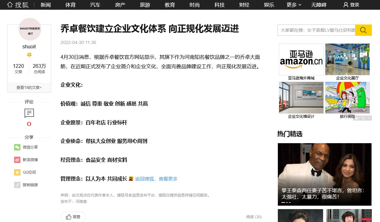 搜狐網(wǎng)新聞報(bào)道原文截圖