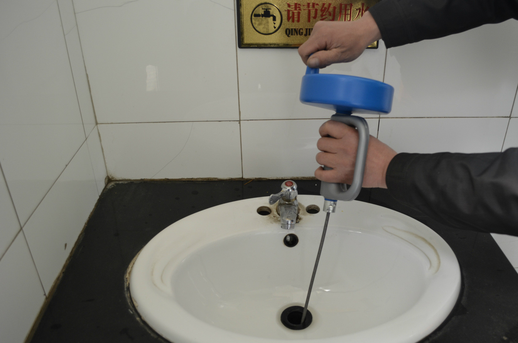 2、圓木疏通下水道法:我們可以找一根和下水道管差不多粗的圓木棍,插到管道里,然后在水池內(nèi)放一定量的水,不間斷地迅速上下抽圓木,在吸力和壓力的作用下,管中堵塞的污物就會(huì)被沖走了。