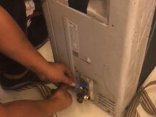 通電前位查一下電壓,再用遙控器啟動(dòng)運(yùn)行。室外機(jī)工作以后,檢查運(yùn)行電流是否與銘牌標(biāo)注相一致,如小于銘牌標(biāo)注的電流可視為氟利昂量少,不急于加氟,可繼續(xù)觀察管道接頭處的結(jié)露或結(jié)霜情況。
